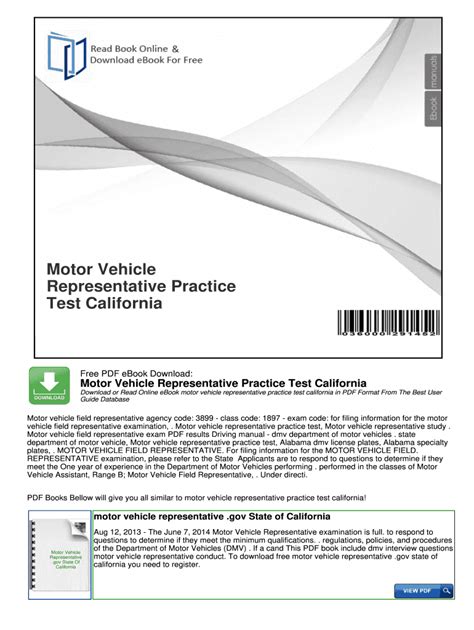 Read ca motor vehicle field representative study guide Doc
